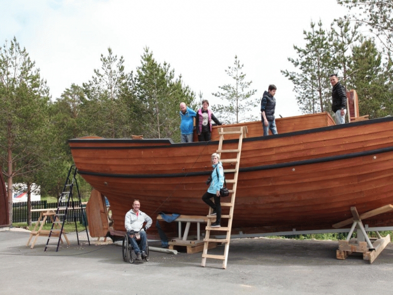 Вот и для наших инвалидов сотрудник Центра провел мастер-класс по спасению на воде. Попробовав на практике, оказалось, что даже кидать круг утопающему не такое простое дело, как кажется на первый взгляд - тут нужна сноровка и тренировка. Еще одна цель нашей мини-экспедиции - познакомиться с материально-технической базой Муниципального учреждения Вытегорского муниципального района "Центр образования, оздоровления детей и развития туризма "Корабеллы Прионежья" и с созданным на его базе и при помощи МЧС России, Главы Правительства Вологодской области с историко-патриотическим клубом «Корабелы Прионежья». Здесь радушно встретила сотрудник клуба Ольга Джиошвили, которая рассказала об истории создания клуба, показала почти достроенный корабль, на котором юные корабелы, также как и мы, отправятся в экспедицию по Онежскому озеру и примут участие в Международной Кижской регате. Девиз клуба «Будут корабелы – будут корабли». Как это верно! Увлеченные люди в наши дни в мастерских спасательного центра строят традиционные лодки «кижанки» и «соймы», и даже судно морского класса - вельбот Уайта образца XIX века. Кроме того, в ходе занятий воспитанники клуба знакомятся с историей судостроения и судоходства Русского Севера, географией ремесла, разновидностями деревянных судов. В клубе есть свой эллинг (для строительства, ремонта судов и их хранения), слип для спуска судов на воду, причал. Создан этнографический клуб «Ремесленники Прионежья». Дети в лагере изучают гончарное и кузнечное ремесло, традиции и обычаи Вытегорского края, занимаются берестоплетением, плотницким делом. Мы поздравили клуб с его первым 5-летним юбилеем, вручили памятные сувениры и пожелали, чтобы их новые корабли покоряли водные просторы и попутного ветра в паруса!